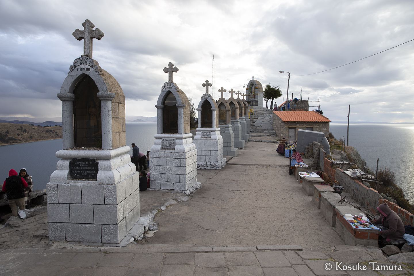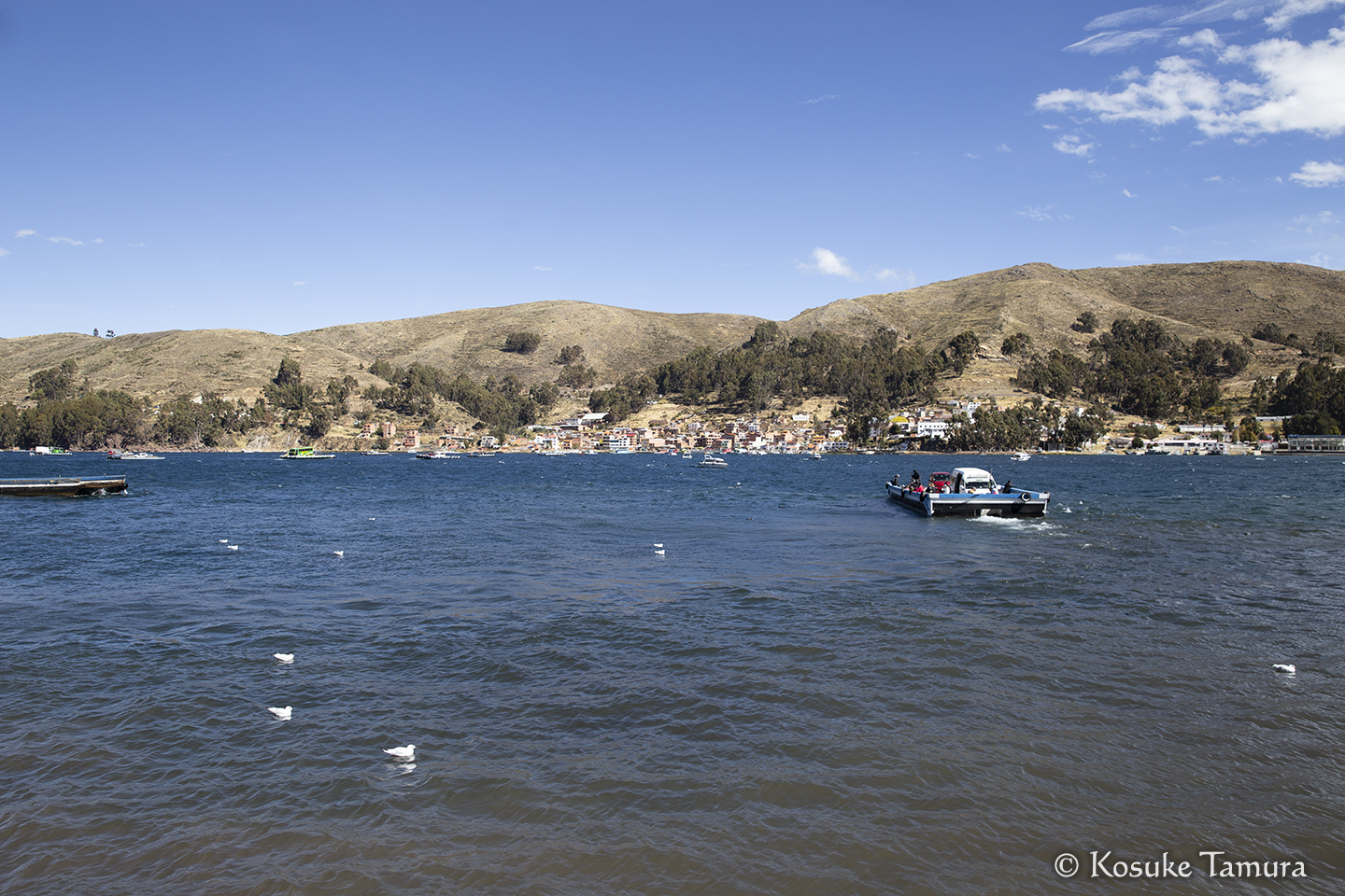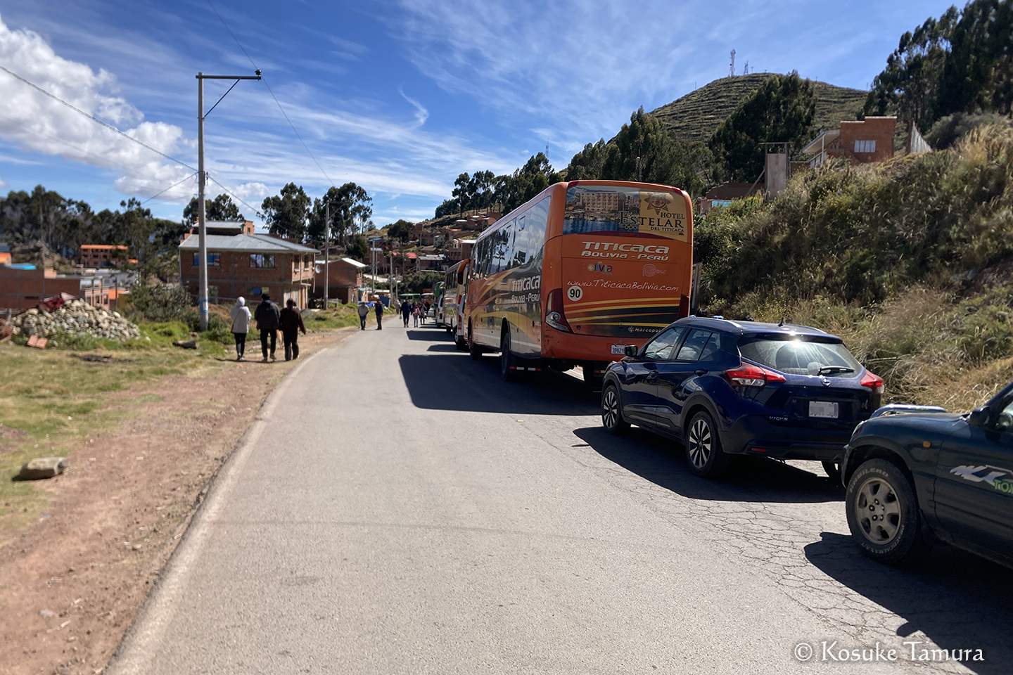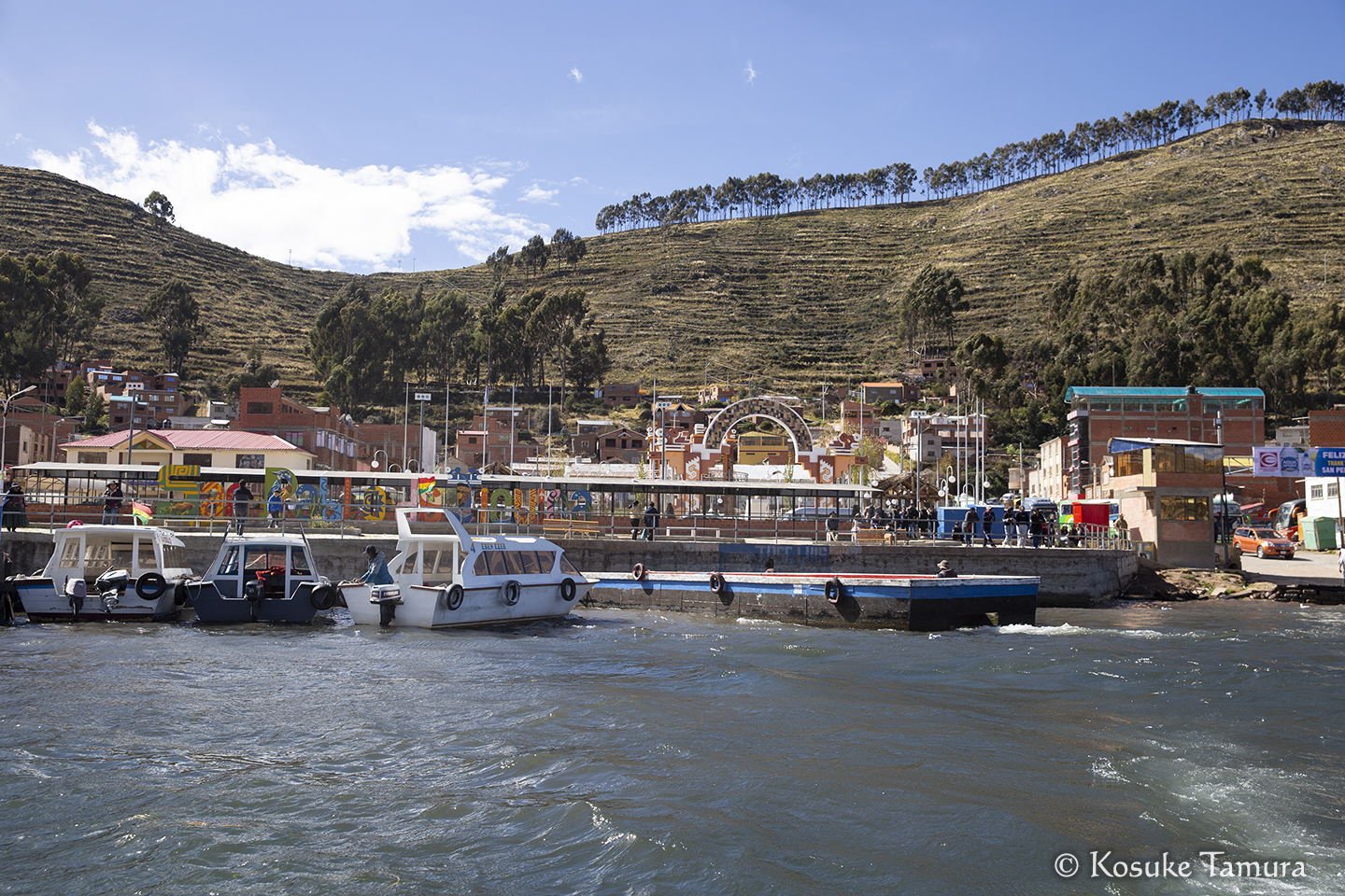 しばらくして、湖の対岸に渡るところでバスが停まった。3時間ほど待たされた後、バスは頼りない渡し船で運ばれ、乗客はモーターボートに乗り換えるが、これが大揺れして肝を冷やした。無事に対岸へたどり着くと、目の前にはマンコ・カパック像があって安堵する。まるでゲームで難所を超えた先に配置されるセーブポイントだ。